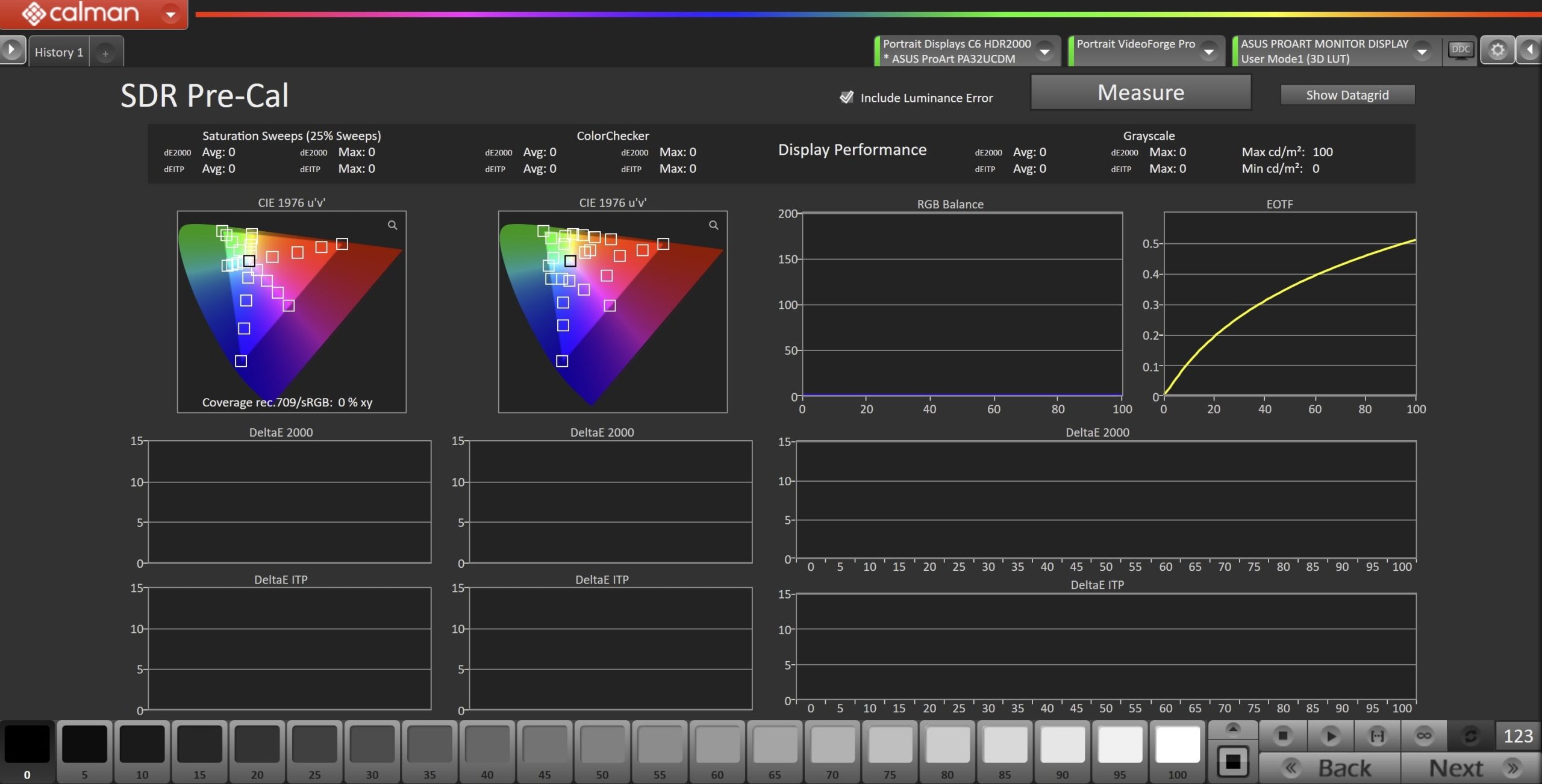 - To take Pre-Calibration Measurements, click the Measure button to measure the display’s rayscale and color response.