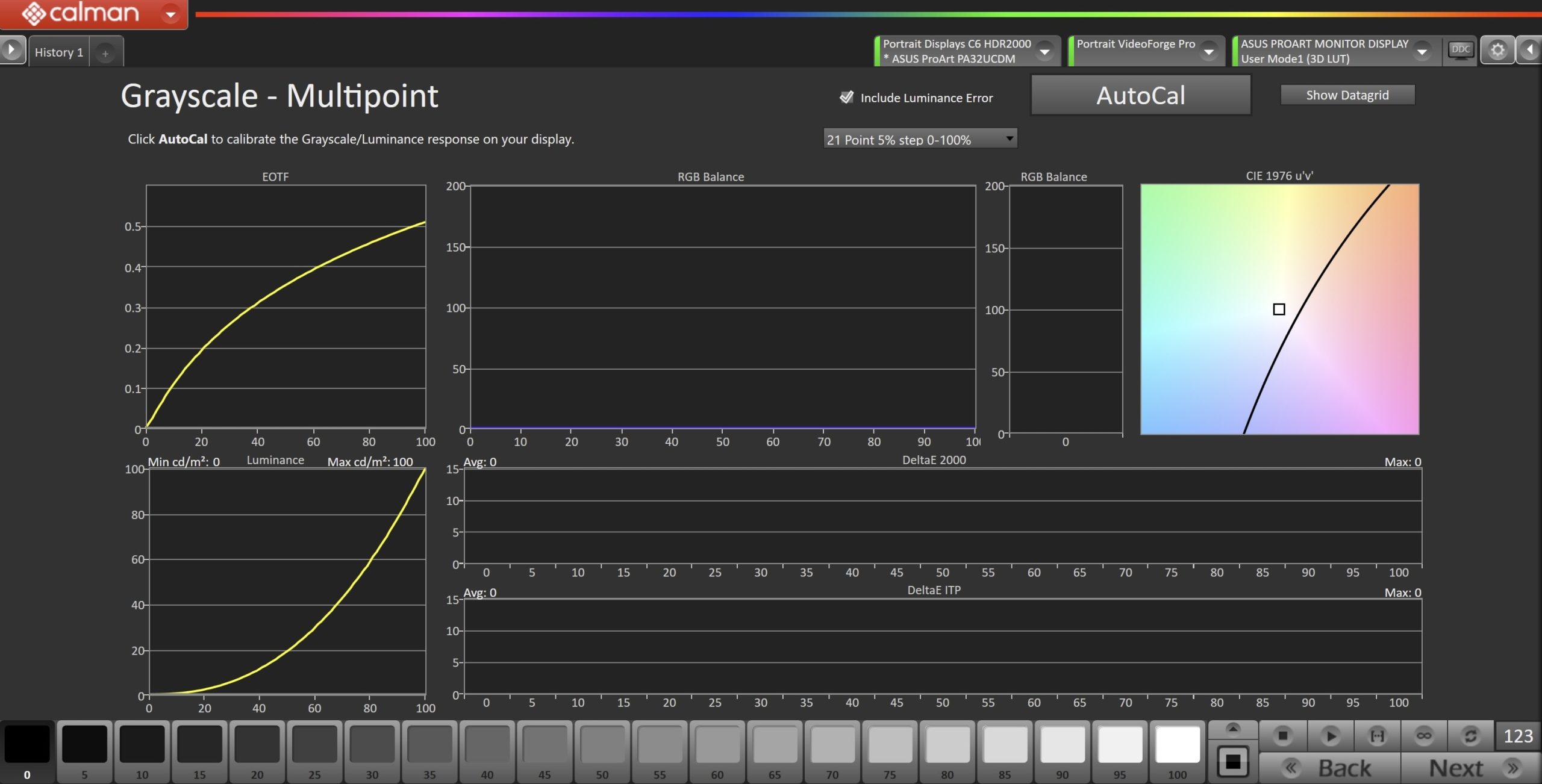 - Click the AutoCal button and select the correct data points in the AutoCal Dialog to auto-calibrate the Grayscale/Luminance response on the display.