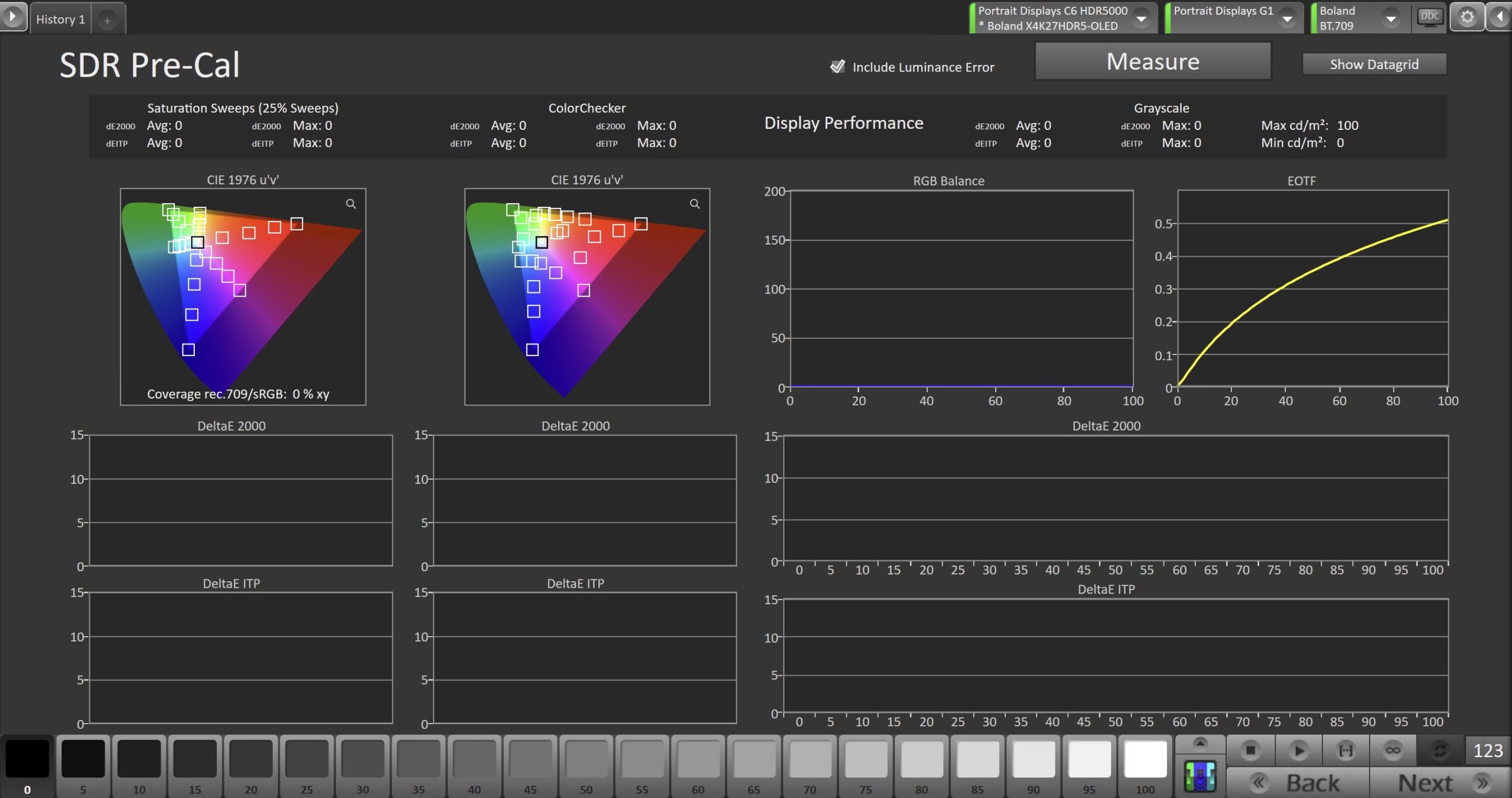 - To take Pre-Calibration Measurements, click the Measure button to measure the display’s rayscale and color response.