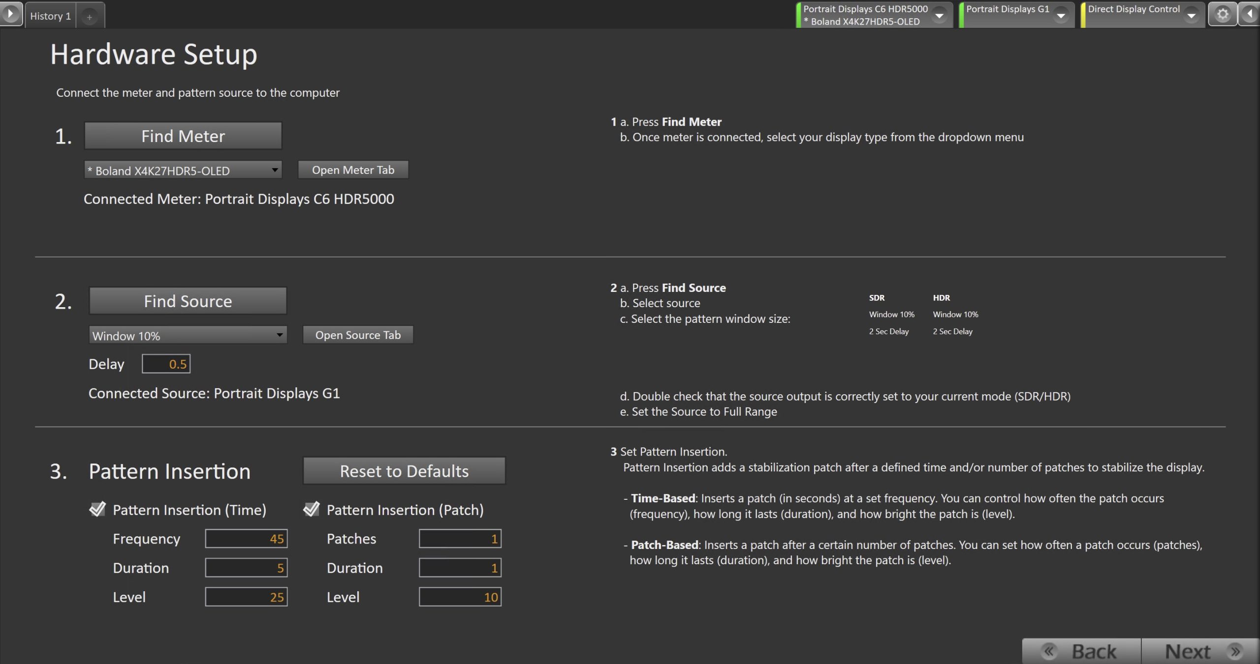 - Click the Reset to Defaults button to set the appropriate pattern insertion for the display and calibration type in Step 1