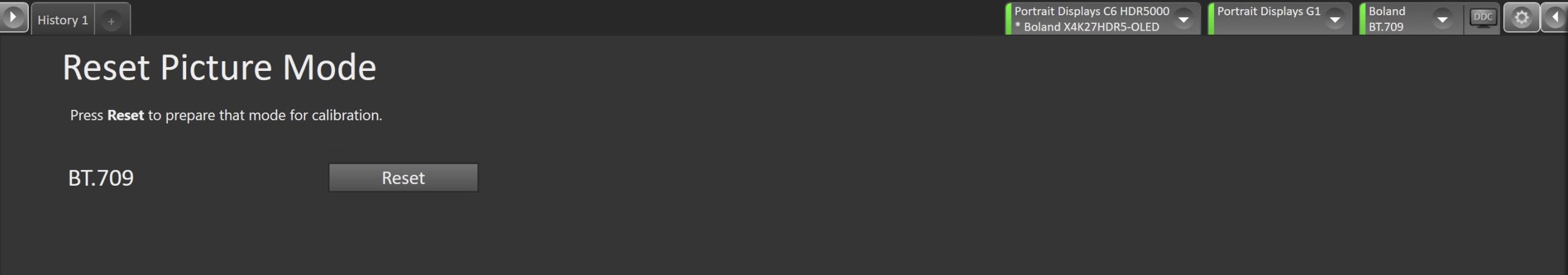 - Click the Reset button. This resets and prepares the picture mode for calibration.