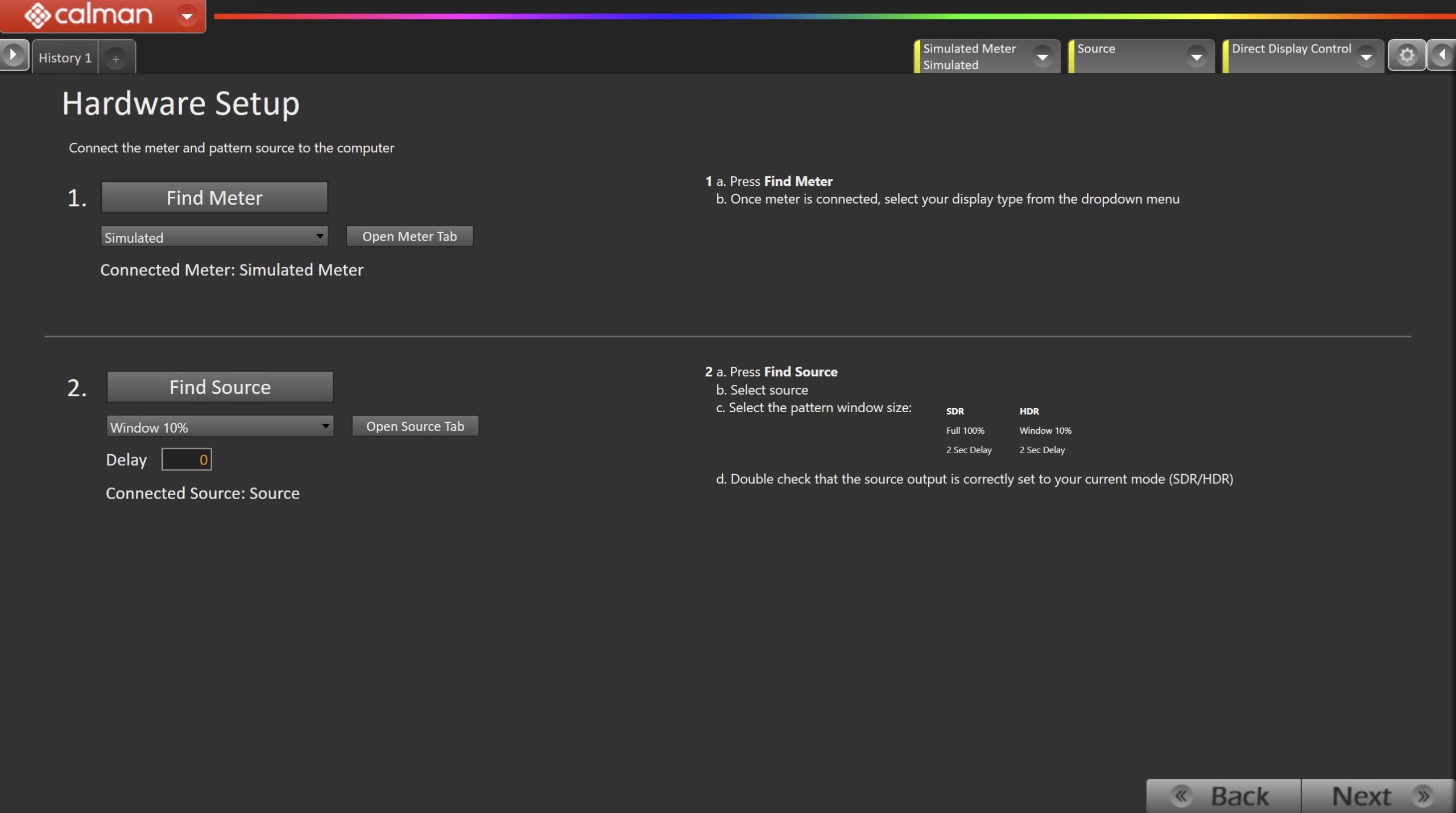- On the introduction screen, select your calibration mode (SDR/HDR) from the dropdown and click Next to proceed to Hardware Setup