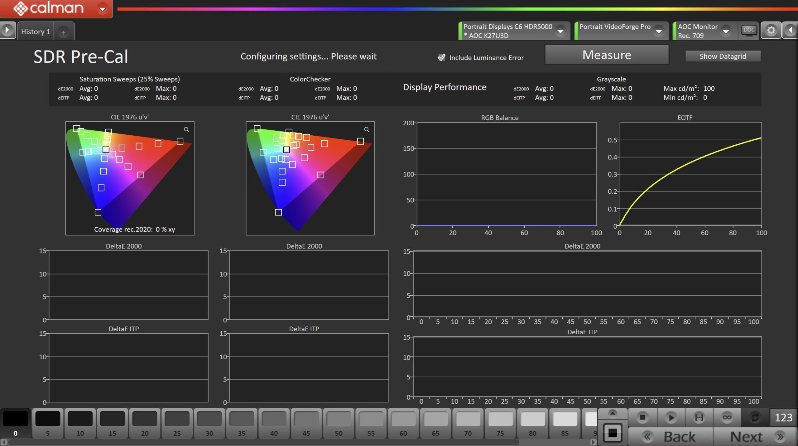- To take Pre-Calibration Measurements, click the Measure button to measure the display’s rayscale and color response.