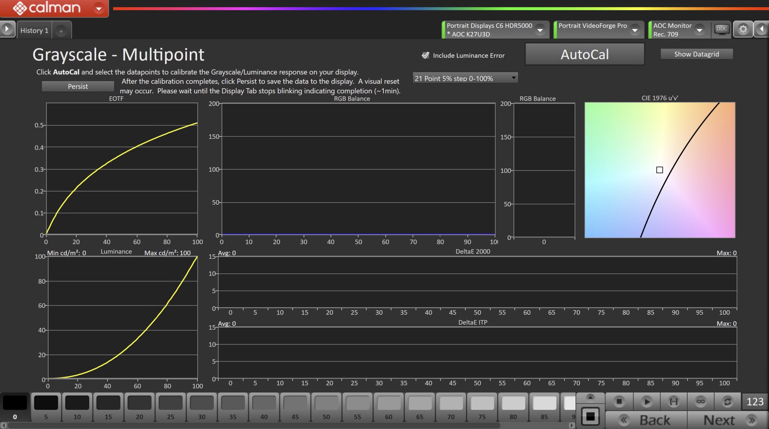 - Click the AutoCal button and select the number of data points in the AutoCal Dialog to auto-calibrate the Grayscale/Luminance response on the display.