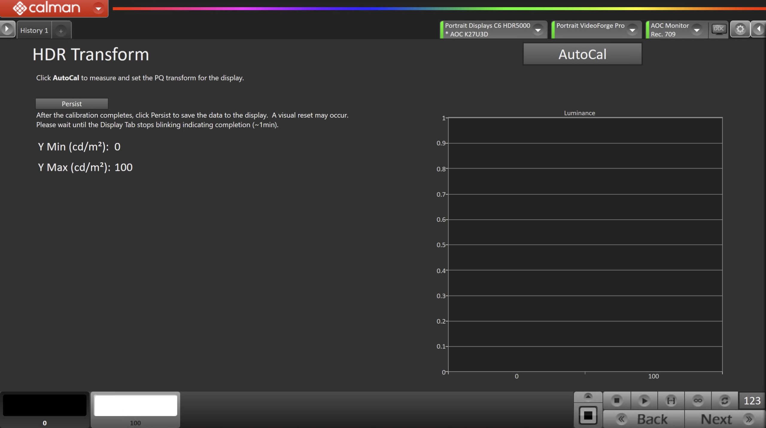 - Set the Target Luminance, then click AutoCal to set the displays’s light output at 100% white.