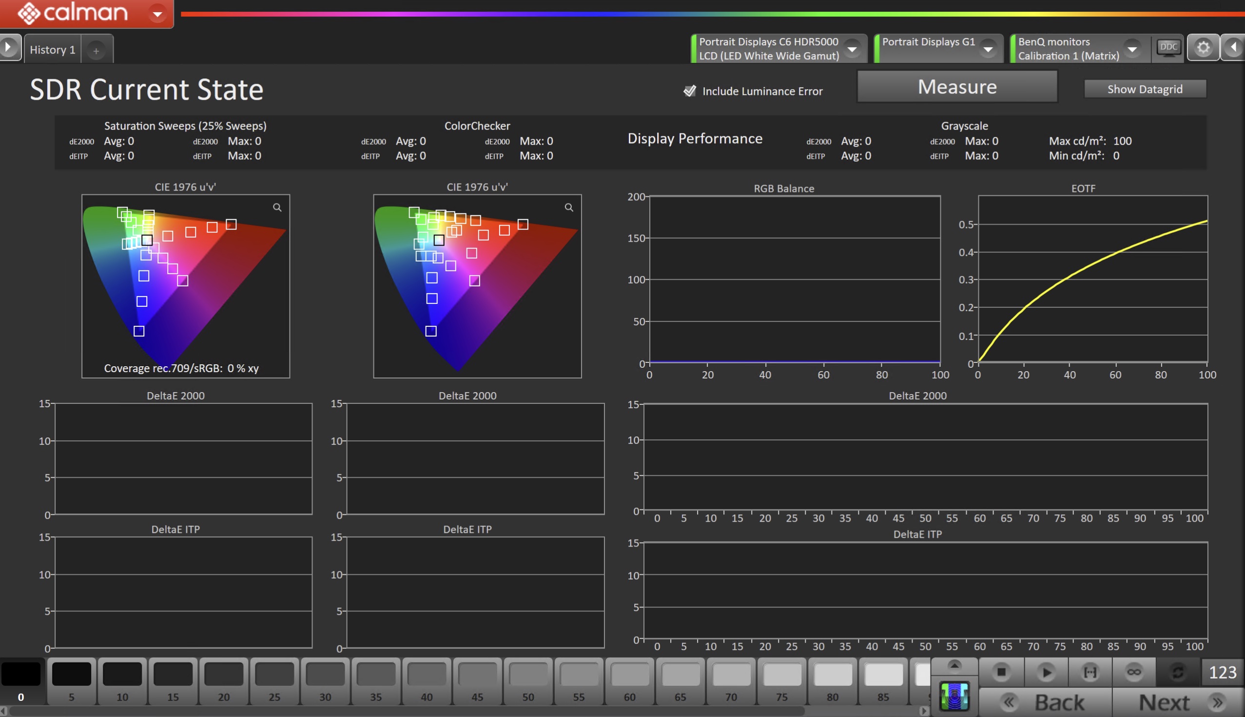 - To take Current State Measurements, click the Measure button to measure the display’s rayscale and color response.