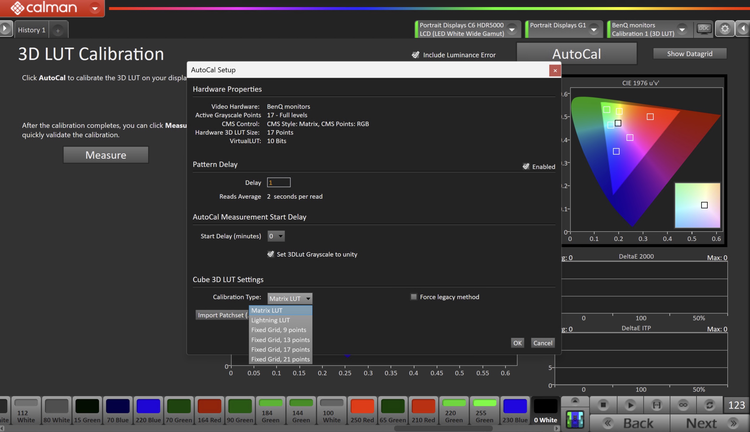 The BenQ Monitor Calibration workflow in Calman provides automated calibration for supported BenQ models. Depending on the monitor’s capabilities, Calman can load a full 3D LUT directly into the display or apply a 1D LUT paired with a color correction matrix. This workflow guides you through configuring your targets and performing accurate calibrations using the monitor’s internal processing.