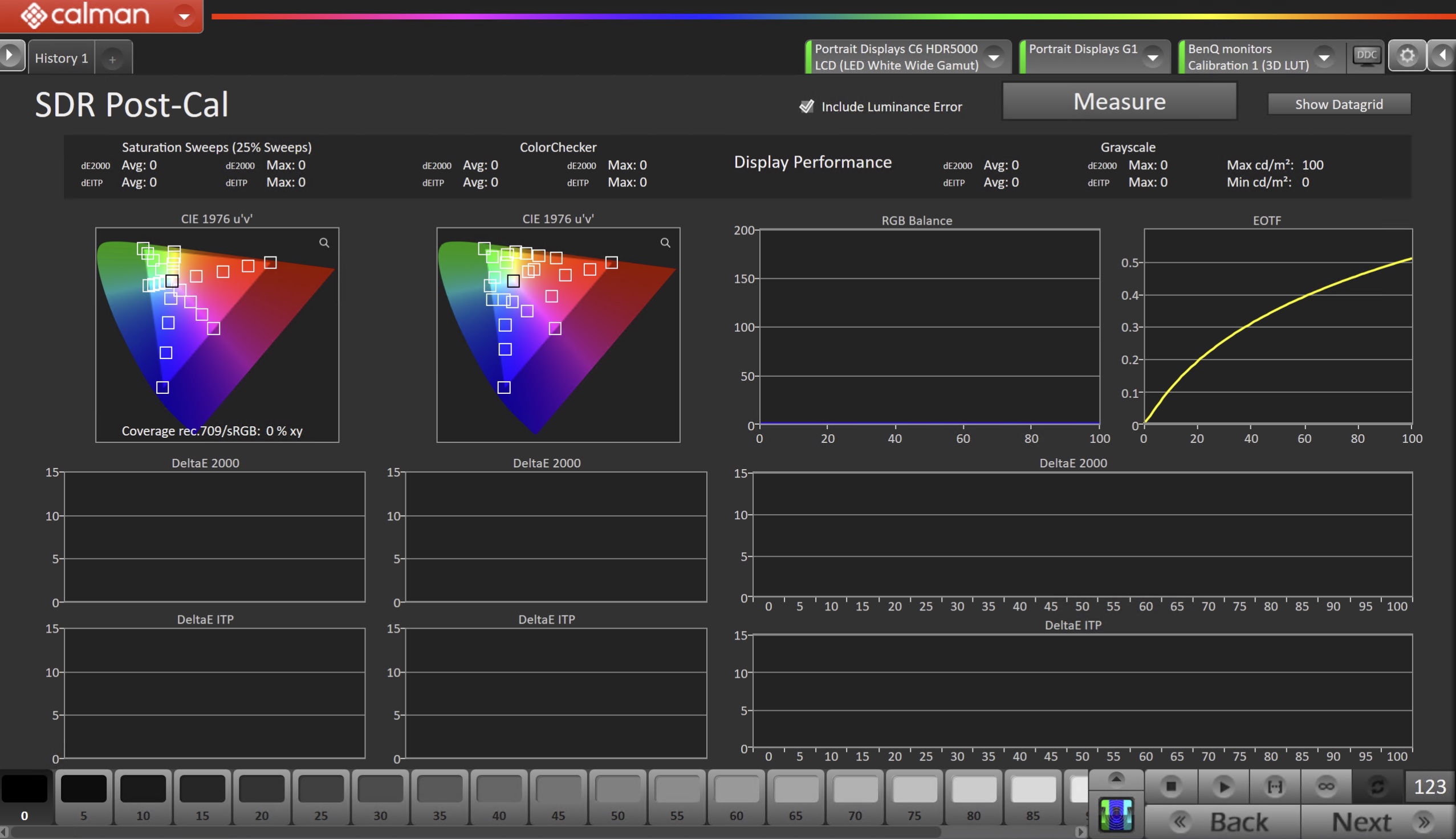 - To take Post-Calibration Measurements, click the Measure button to measure the display’s grayscale and color response.