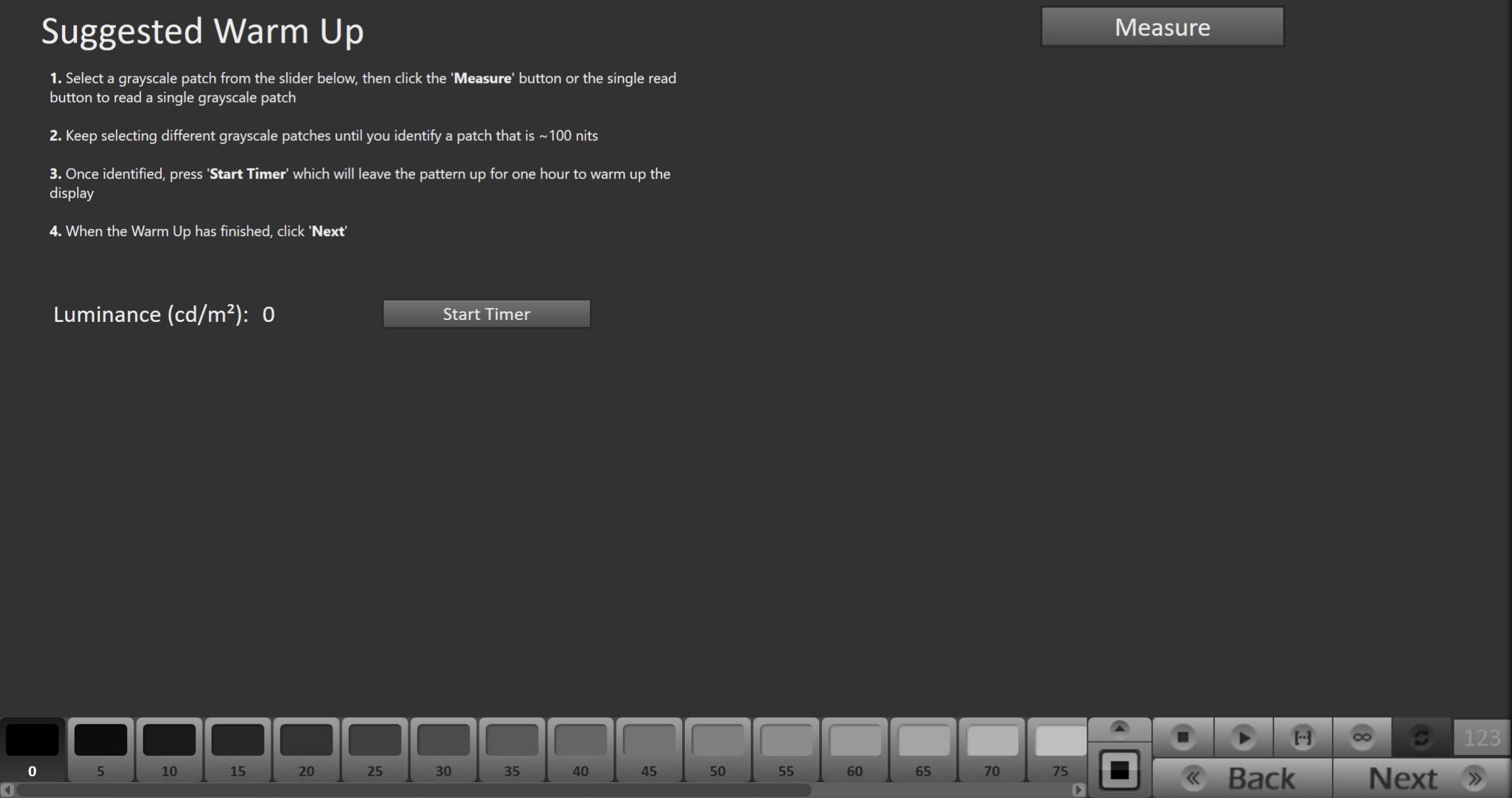 - To take Pre-Calibration Measurements, click the Measure button to measure the display’s rayscale and color response.