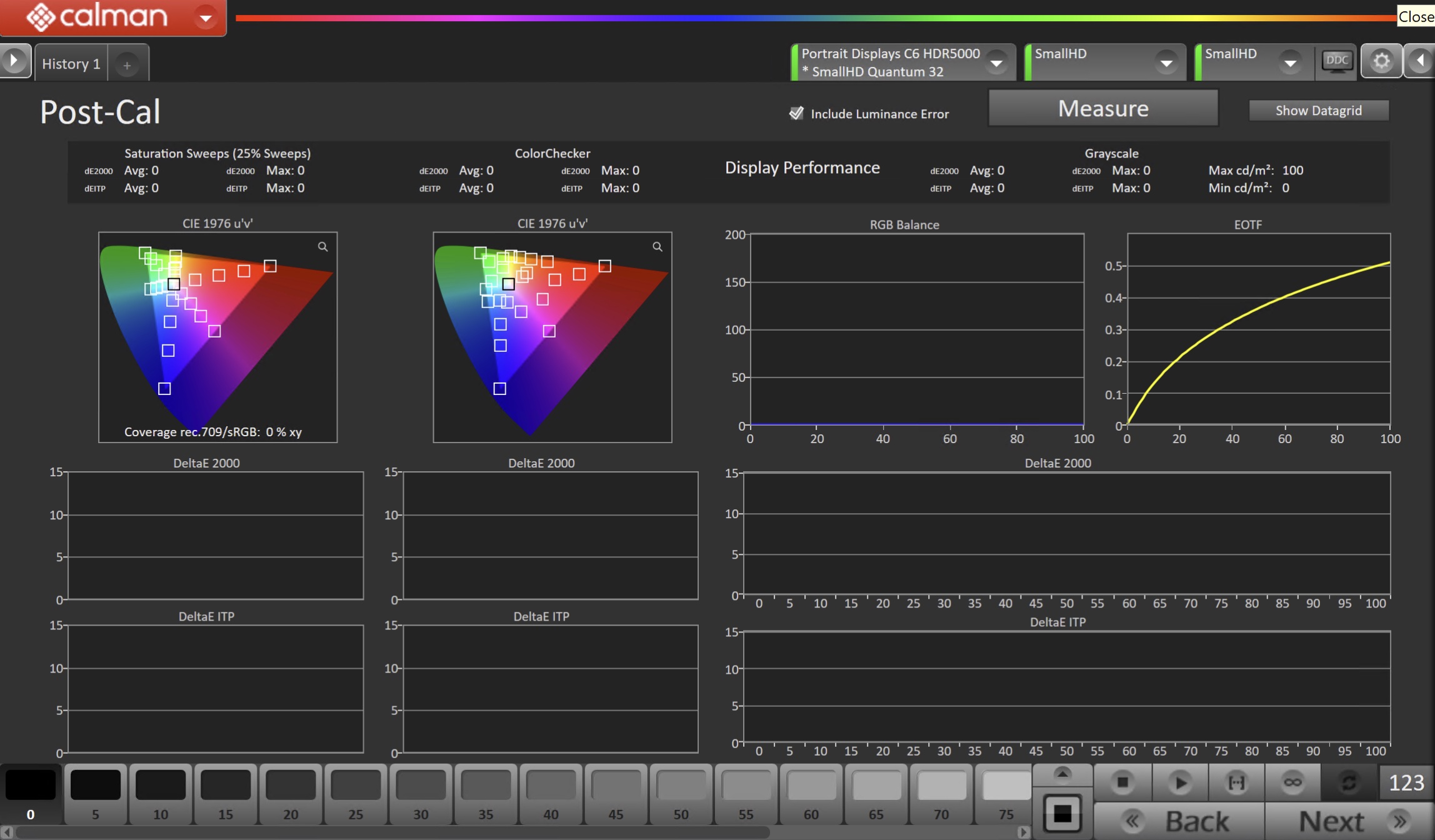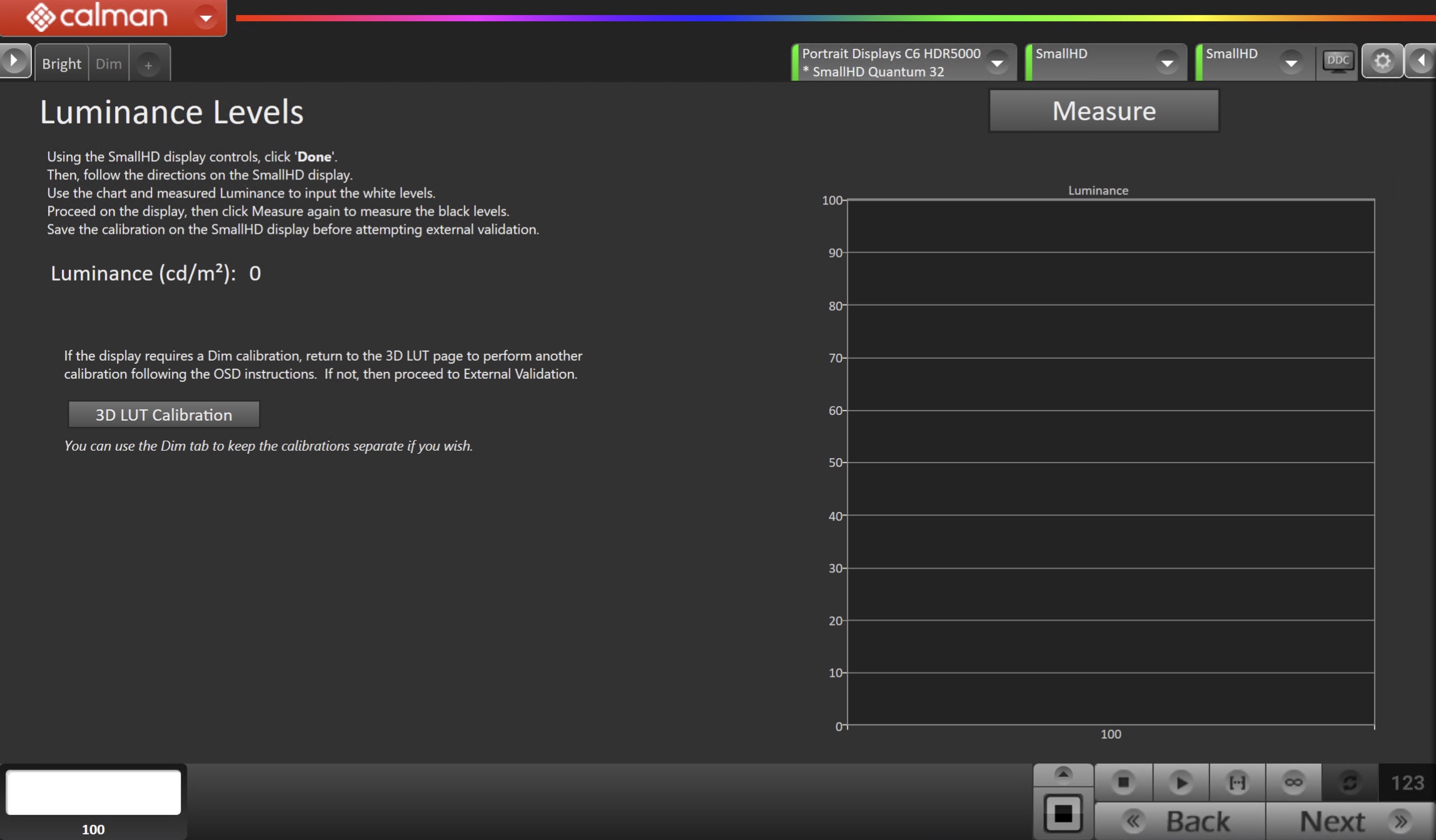 - Proceed on the display, then click Measure again to measure the black levels. Save the calibration on the SmallHD display before attempting external validation.