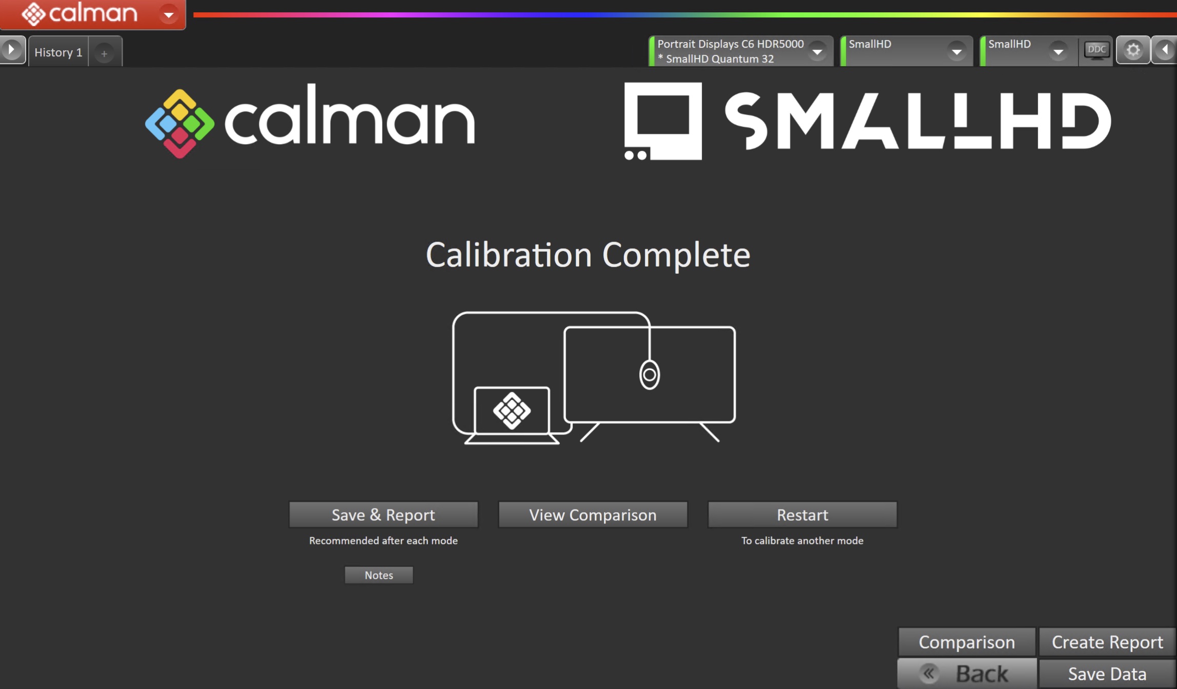 The SmallHD Monitor Calibration workflow in Calman provides a step-by-step process for calibrating compatible SmallHD monitors to ensure accurate color reproduction and optimal image performance. This workflow guides users through connecting their monitor, selecting calibration targets, and performing both 1D and 3D LUT calibrations. By following the guided steps, users can achieve consistent, professional-grade results tailored to their specific display and production environment.