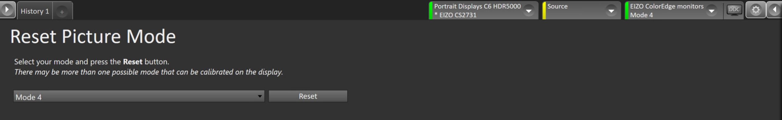 - Click the Reset button. This resets and prepares the picture mode for calibration.