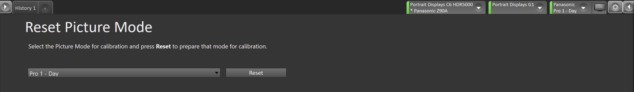 - Click the Reset button. This resets and prepares the picture mode for calibration.