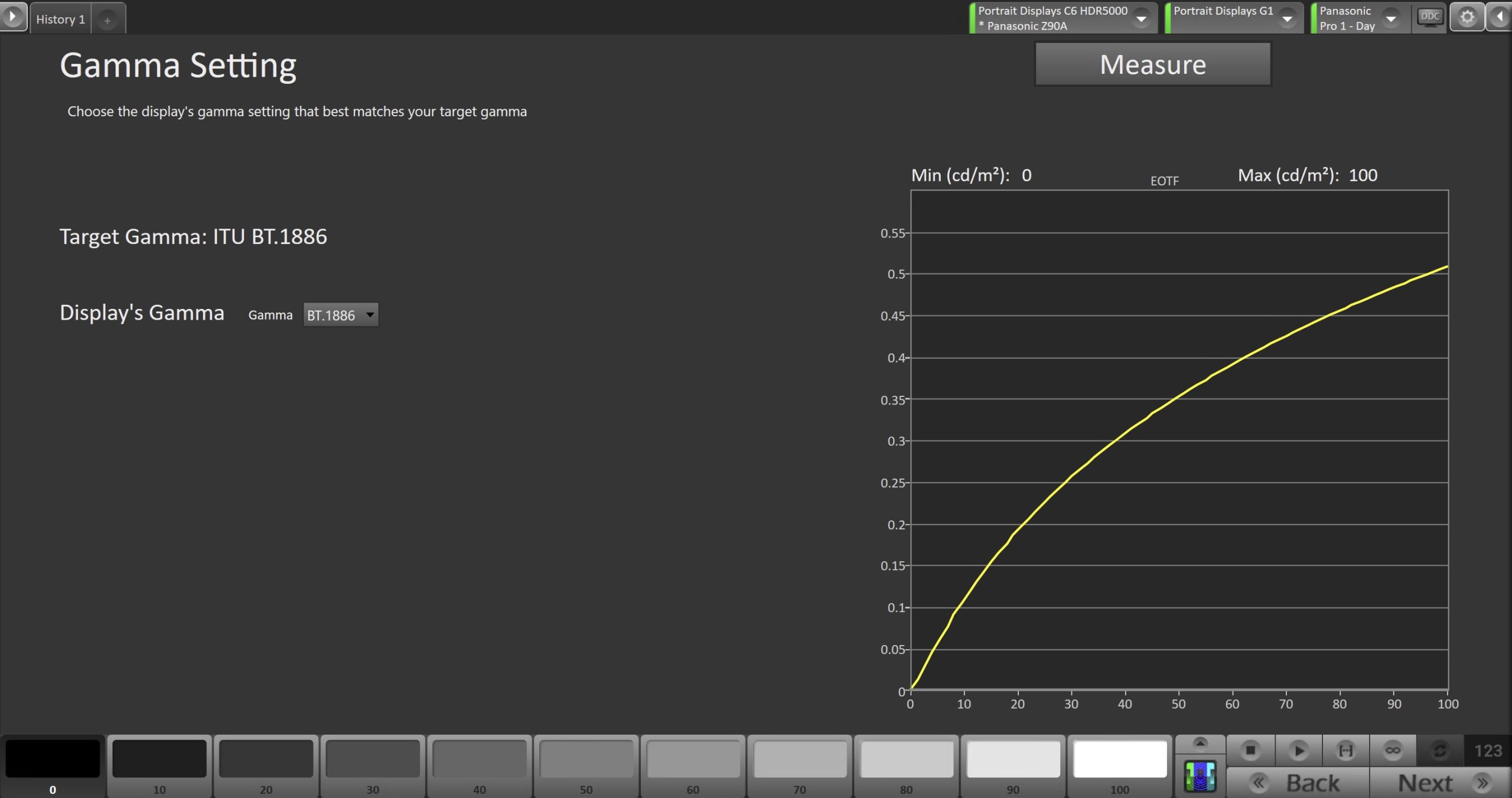 - Choose the formula that best matches your Gamma target, and click measure to verify. Modify the setting and re-measure as needed.